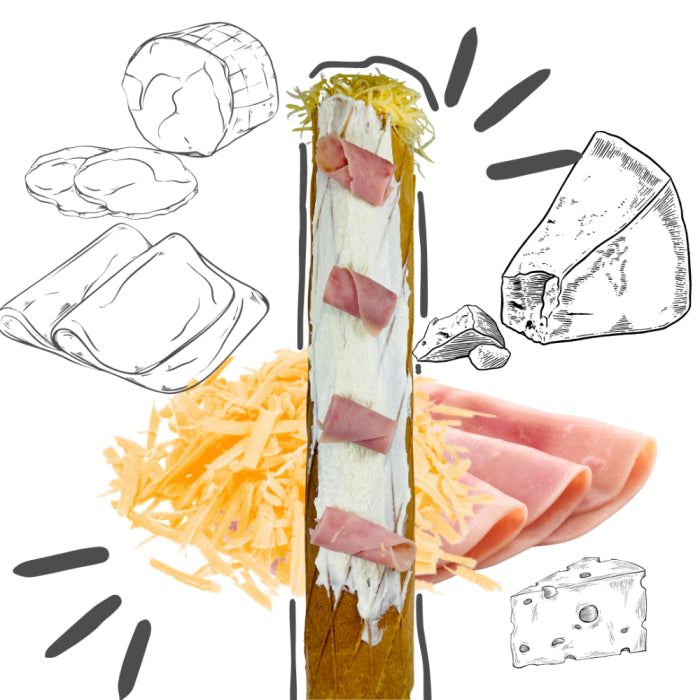 Marquesita súper crujiente con queso crema, jamón de pavo y el tradicional queso de bola.
